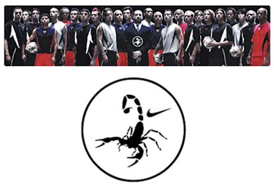 “Secret Tournament”. A fase “provocativa” da campanha começou em março com propagandas que não mostravam mais do que um par de chuteiras de futebol e um escorpião, um símbolo do “estilo rápido e mortal de jogo” com o qual a NIKE queria ser identificada. Para os curiosos, havia uma referência ao endereço eletrônico nikefootball.com, onde os visitantes poderiam jogar videogames e aprender mais sobre o torneio em 12 idiomas. A fase de “excitação” do torneio começou em abril, com uma série de comerciais retratando um ambiente sombrio e agressivo que evocava a Austrália pós-apocalíptica do filme Mad Max e a alienação do Clube da Luta. Oito equipes de três jogadores, compostas pelas principais estrelas do futebol mundial como Ronaldinho Gaúcho, Thierry Henry, Francesco Totti, Roberto Carlos, Hidetoshi Nakata, Edgard Davids, Luis Figo, Javier Saviola, Lilian Thuram, Ronaldo, Denílson, Hernan Crespo e até o aposentado francês Eric Cantona, no papel de mediador, disputavam um torneio de partidas do tipo morte-súbita em um pequeno campo dentro de uma jaula de aço em um enorme navio.
